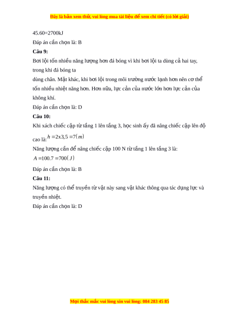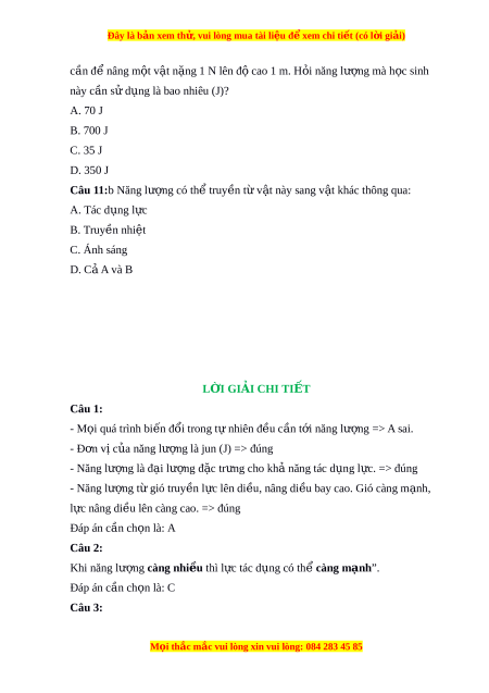Đây là bản xem th , vu ử i lòng mua tài li u ệ đ xe ể m chi ti t ế (có l i ờ gi i ả ) cần đ nâng m ể t ộ v t ậ n ng 1 N ặ lên đ cao ộ 1 m. H i ỏ năng lư ng m ợ à h c s ọ inh này cần sử d ng l ụ à bao nhiêu (J)? A. 70 J B. 700 J C. 35 J D. 350 J