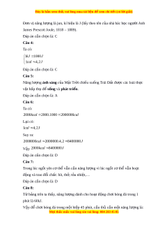 James Prescott Joule, 1818 – 1889). Đáp án cần ch n ọ là: C Câu 4: Ta có: 1 kJ 1 000J 1cal 4 , 2J Đáp án cần ch n ọ là: C Câu 5: Năng lư ng ợ ánh sáng c a ủ M t ặ Tr i ờ chi u xu ế ống Trái Đất đư c ợ các loài th c ự v t ậ hấp th đ ụ ể s ng