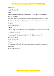 D. Cả 3 đáp án trên đ u đúng. ề Câu 8: Để ch i ơ bóng đá trong m t ộ hi p 45 phút ệ , c u t ầ h c ủ n m ầ t ộ năng lư ng ợ bao nhiêu? A. 2700 J B. 2700 kJ C. 60 kJ D. 60 J Câu 9: T i ạ sao b i ơ l i ộ l i ạ t n nhi ố u năng l ề ư ng ợ h n đá bóng? ơ A. Vì khi b i ơ l i