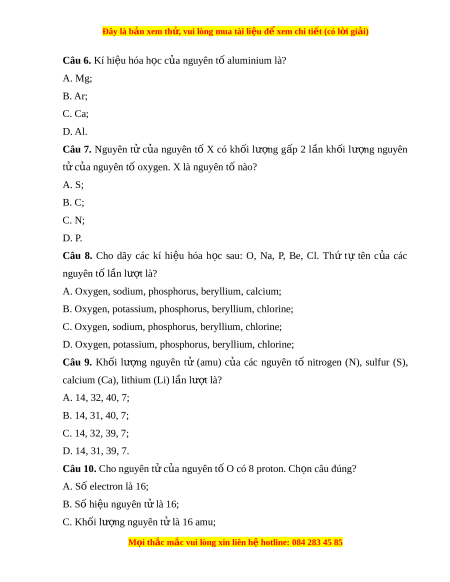 Đây là bản xem th , vu ử i lòng mua tài li u ệ đ xe ể m chi ti t (c ế ó l i ờ gi i ả ) Câu 6. Kí hi u hóa h ệ c c ọ a