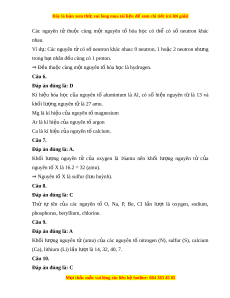 ố neutron khác nhau: 0 neutron, 1 ho c ặ 2 neutron nh ng ư trong h t ạ nhân đ u cùng có 1 pr ề oton. ⇒ Đ u ề thu c ộ cùng m t ộ nguyên tố hóa h c l ọ à hydrogen. Câu 6. Đáp án đúng là: D Kí hi u ệ hóa h c ọ c a