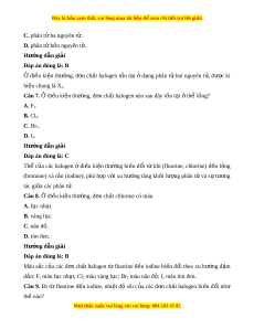 ế odine, bán kính nguyên tử c a các ủ nguyên t t ố ăng d n. ầ Câu 6. Ở đi u ki ề ện thư ng, đ ờ n ch ơ ất halogen tồn t i ạ ở d ng ạ A. m t ộ nguyên t . ử B. phân t hai ử nguyên t . ử M i ọ thắc m c