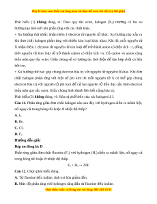 Câu 11. Ph n ng gi a đ n ch t halogen nào sau đây v i hydrogen di n ra mãnh li t,ả ứ ữ ơ ấ ớ ễ ệ