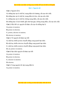 Đây là bản xem th , vu ử i lòng mua tài li u ệ đ xe ể m chi ti t (c ế ó l i ờ gi i ả ) Bài 1: Nguyên tử Câu 1. Nguyên t l ử à A. nh ng h ữ t ạ c c kì ự