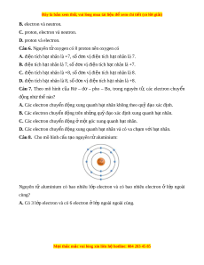 nhỏ bé, không mang điện, cấu t o ạ nên ch t ấ . D. nh ng h ữ t ạ có kích thư c ớ g n nh ầ ư h t ạ g o, không m ạ ang đi n, c ệ u t ấ o ạ nên ch t ấ . Câu 2. Hầu h t ế các nguyên t đ ử ư c ợ c u t ấ o ạ t nh ừ ng h ữ t ạ là A. proton và neutron. B. proton và electron.