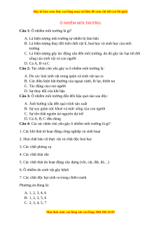 Câu 11: Nguồn gốc gây ra sự ô nhiễm sinh học môi trường sống là do: