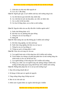 Câu 9: Các chất bảo vệ thực vật và các chất độc hoá học thường được tích tụ ở đâu? A. Đất, nước B. Nước, không khí C. Không khí, đất