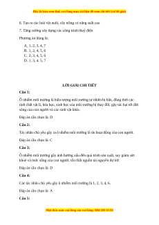 7. Tăng cường xây dựng các công trình thuỷ điện Phương án đúng là: A. 1, 2, 3, 4, 7 B. 1, 2, 4, 5, 6 C. 2, 3, 4, 5, 6 D. 1, 3, 4, 5, 7 LỜI GIẢI CHI TIẾT Câu 1: