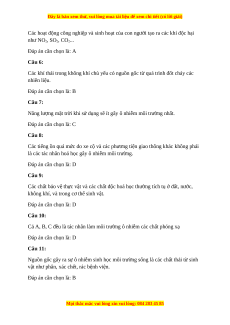 sống của con người và các sinh vật khác. Đáp án cần chọn là: D Câu 2: