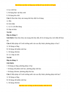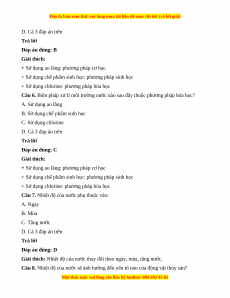 Câu 6. Biện pháp xử lí môi trường nước nào sau đây thuộc phương pháp hóa học? A. Sử dụng ao lắng