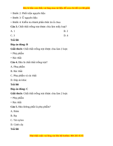 Giải thích: Chất th i ả tr ng t ồ r t ọ đư c ợ chia làm 2 lo i ạ : + Ph ph ụ m ẩ + Rác th i ả Câu 4. Đâu là ch t ấ th i ả tr ng t ồ r t ọ ? A. Ph ph ụ m ẩ B. Rác th i ả C. Ph ph ụ m ẩ và rác th i ả D. Đáp án khác Trả l i ờ Đáp án đúng: C
