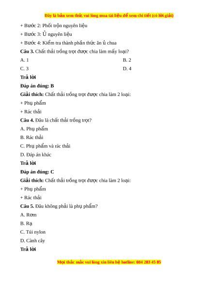 Đây là bản xem th , vu ử i lòng mua tài li u ệ đ xe ể m chi ti t (c ế ó l i ờ gi i ả ) + Bư c 2: ớ Ph i ố tr n nguyên l ộ i u ệ + Bư c 3: ớ nguyên l Ủ i u ệ + Bư c 4: ớ Ki m ể tra thành ph n t ầ h c ăn ứ chua ủ Câu 3. Chất th i ả tr ng t ồ r t ọ đư c chi ợ a làm m y l ấ o i ạ ? A. 1 B. 2 C. 3 D. 4 Trả l i ờ Đáp án đúng: B