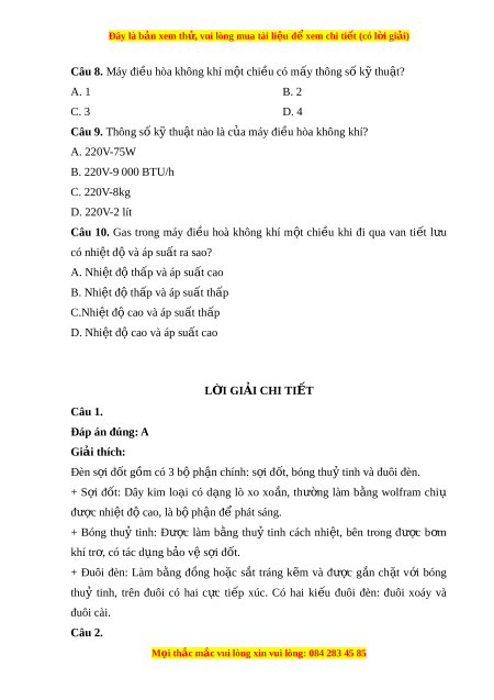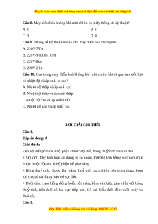 Đây là bản xem th , vu ử i lòng mua tài li u ệ đ xe ể m chi ti t ế (có l i ờ gi i ả ) Câu 8. Máy đi u ề hòa không khí m t ộ chi u có m ề ấy thông số k t ỹ hu t ậ ? A. 1 B. 2 C. 3 D. 4