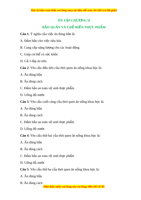 Đây là bản xem th , vu ử i lòng mua tài li u ệ đ xe ể m chi ti t ế (có l i ờ gi i ả ) ÔN TẬP CHƯ N Ơ G II BẢO QUẢN VÀ CH B Ế I N Ế TH C Ự PH M Ẩ