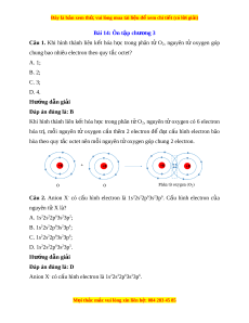 ặ electron dùng chung gi a hai ữ nguyên t ; ử D. S t ự ư ng ơ tác gi a các ữ nguyên t v ử i ớ nhau. Hư ng d ớ ẫn gi i ả Đáp án đúng là: B Nguyên t ử phi kim có l p ớ electron hóa tr ịg n