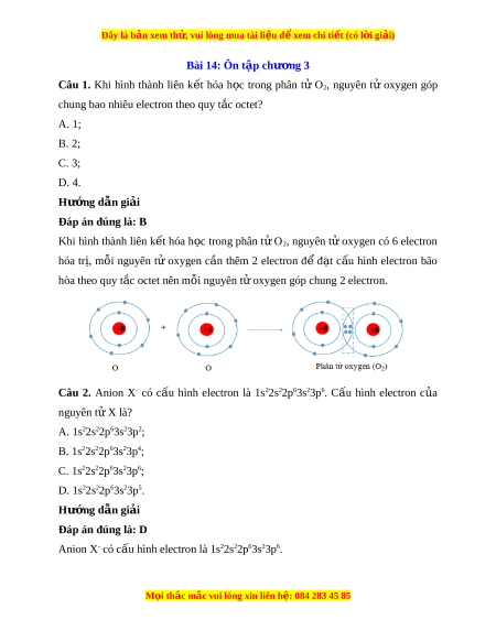 hóa tr , m i nguyên t oxygen c n thêm 2 electron đ đ t c u hình electron bãoị ỗ ử ầ ể ạ ấ