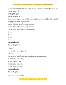 ơ nguyên tử số oxi hóa c a ủ nguyên tử b ng ằ đi n ệ tích ion, trong ion đa nguyên t t ử ổng số oxi hóa c a ủ các nguyên t b ử ng đi ằ n t ệ ích ion. Hư ng d ớ ẫn gi i ả Đáp án đúng là: C Trong h p