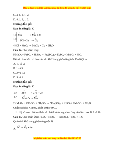 ứ HCl + MnO2 → MnCl2 + Cl2 + H2O có hệ số cân b ng ằ c a ủ các chất lần lư t ợ là A. 2, 1, 1, 1, 1; B. 2, 1, 1, 1, 2; M i