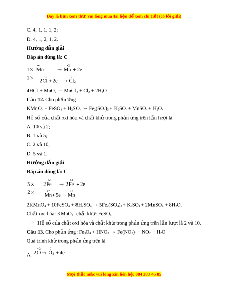 H s c a ch t oxi hóa và ch t kh trong ph n ng trên l n l t là 2 và 10.ệ ố ủ ấ ấ ử ả ứ ầ ượ