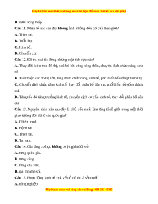 ọ không có ý nghĩa đối v i ớ A. t ng qu ừ ốc gia. B. t ng vùng. ừ C. t ng khu v ừ c. ự D. qui mô dân số. Câu 15. Ho t ạ đ ng ki ộ nh t ch ế y ủ u ế đô t ở h l ị à s n ả xu t ấ A. nông nghiệp. M i ọ thắc m c