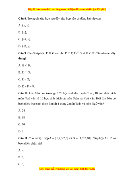 Đây là bản xem th , vu ử i lòng mua tài li u ệ đ xe ể m chi ti t ế (có l i ờ gi i ả ) Câu 8. Trong các t p ậ h p s ợ au đây, t p h ậ p
