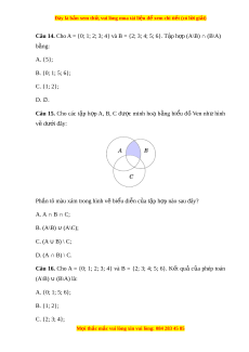 Câu 15. Cho các t p h p A, B, C đ c minh ho b ng bi u đ Ven nh hìnhậ ợ ượ ạ ằ ể ồ ư