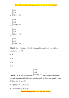 Câu 12. Khi x = 1 và y ≥ 0 thì b t ph ng trình sau có m y c p nghi m ấ ươ ấ ặ ệ