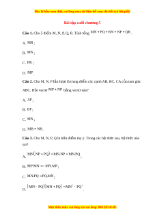 Đây là bản xem th , vu ử i lòng mua tài li u ệ đ xe ể m chi ti t ế (có l i ờ gi i ả ) Bài tập cu i ố chư ng 5 ơ Câu 1. Cho 5 đi m ể M, N, P, Q, R. Tính t ng ổ