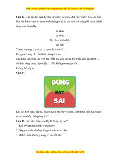 để thắp sáng, cung cấp nhiệt,… Nếu không ó oxygen thì … không thể xảy ra. Câu 14.