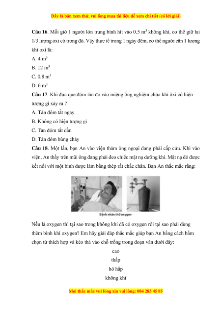 Chủ đề 4: Oxygen và không khí D.1. Bài tập oxygen