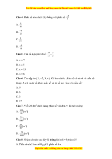 Câu 6. Cho tập A={1; −2; 3; 4}. Có bao nhiêu phân số có tử số và mẫu số