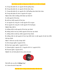 D. hai nguyên tố, trong đó có m t ộ nguyên tố là hydrogen. Câu 6. H p ợ ch t ấ là A. nh ng ch ữ ất do m t ộ nguyên tố hóa h c ọ t o t ạ hành. B. nh ng ch ữ