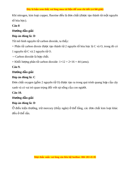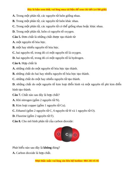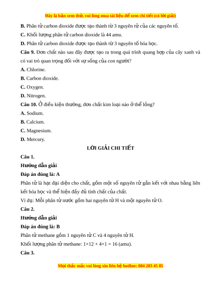 Đây là bản xem th , vu ử i lòng mua tài li u ệ đ xe ể m chi ti t (c ế ó l i ờ gi i ả ) B. Phân t car ử bon dioxide đư c t ợ o ạ thành t 3 nguyên t ừ c ử a ủ các nguyên t . ố