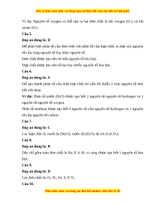 ấ là khí oxygen (O2) và khí ozone (O3). Câu 5. Đáp án đúng là: D Để phân bi t ệ phân tử c a ủ đ n ơ ch t ấ v i ớ phân t ử c a ủ h p ợ ch t ấ , ta d a ự vào nguyên t c ử a cùng ủ