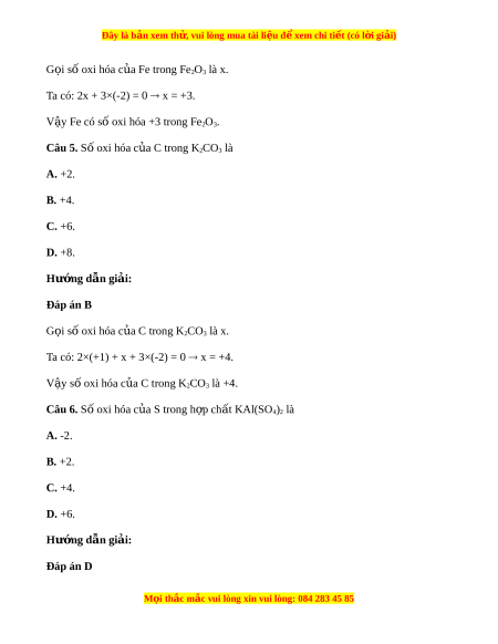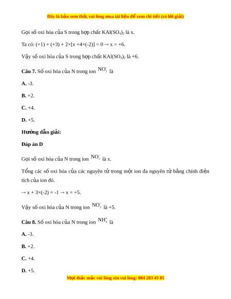 Đây là bản xem th , vu ử i lòng mua tài li u ệ đ xe ể m chi ti t (c ế ó l i ờ gi i ả ) G i ọ số oxi hóa c a S t ủ rong h p ch ợ t ấ KAl(SO4)2 là x.