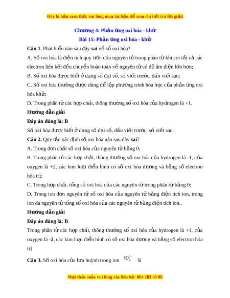 Đây là bản xem th , vu ử i lòng mua tài li u ệ đ xe ể m chi ti t (c ế ó l i ờ gi i ả ) Chư ng 4: ơ Phản ng oxi ứ hóa - khử Bài 15: Ph n ả ng oxi ứ hóa - khử