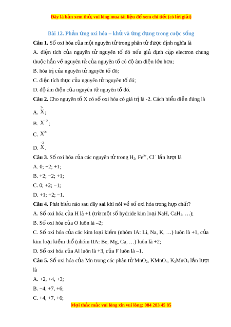 Đây là bản xem th , vu ử i lòng mua tài li u ệ đ xe ể m chi ti t ế (có l i ờ gi i ả ) Bài 12. Phản ng oxi ứ hóa – kh và ử ng d ứ ng t ụ rong cu c ộ s ng ố