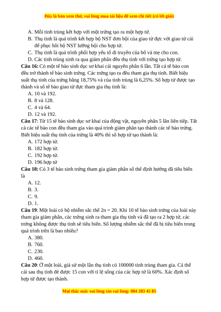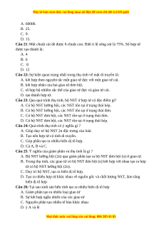 Câu 20: Ở một loài, giả sử một lần thụ tinh có 100000 tinh trùng tham gia. Cá thể