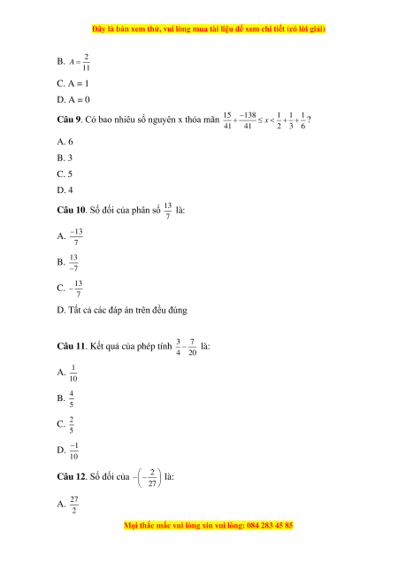 Câu 9. Có bao nhiêu số nguyên x thỏa mãn 15 138 1 1 1 + x + + ? 41 41 2 3 6 A. 6 B. 3 C. 5 D. 4