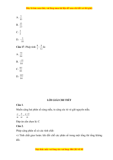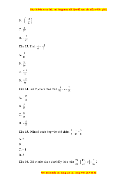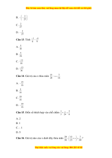 Câu 14. Giá trị của x thỏa mãn − x = 20 16 15 A. − 16 5 B. 16 19 C. 16 19 D. − 16 1 ... 3