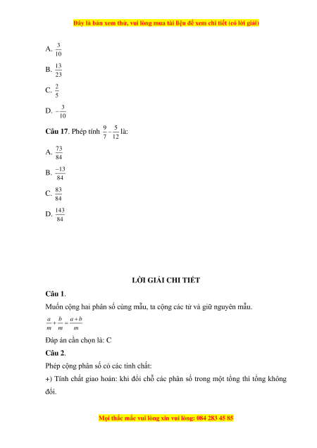 Phép cộng phân số có tính chất nào dưới đây? A. Tính chất giao hoán B. Tính chất kết hợp