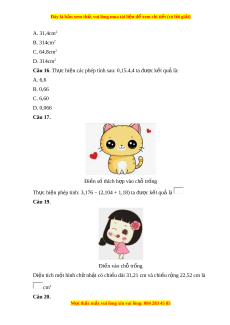 ủ phép trừ 0,008 − 3,9999 là: Câu 6. Đi n s ề ố thích h p vào ợ ô trống Cho bi t ế m t