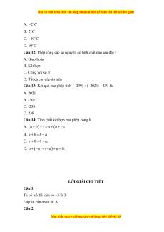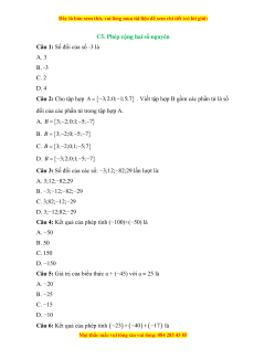 Câu 12: Phép cộng các số nguyên có tính chất nào sau đây: A. Giao hoán B. Kết hợp