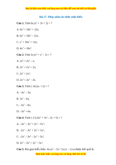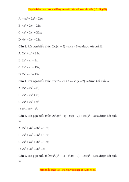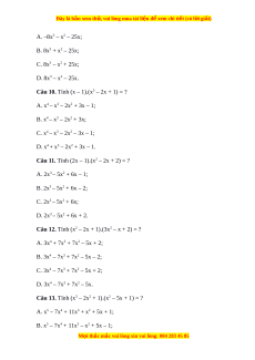 Đây là bản xem th , vu ử i lòng mua tài li u ệ đ xe ể m chi ti t ế (có l i ờ gi i ả ) A. –4x3 + 2x2 – 22x; B. 4x3 + 2x2 – 22x; C. 4x3 + 2x2 + 22x; D. 4x3 – 2x2 – 22x. Câu 6. Rút g n bi ọ u t ể h c: