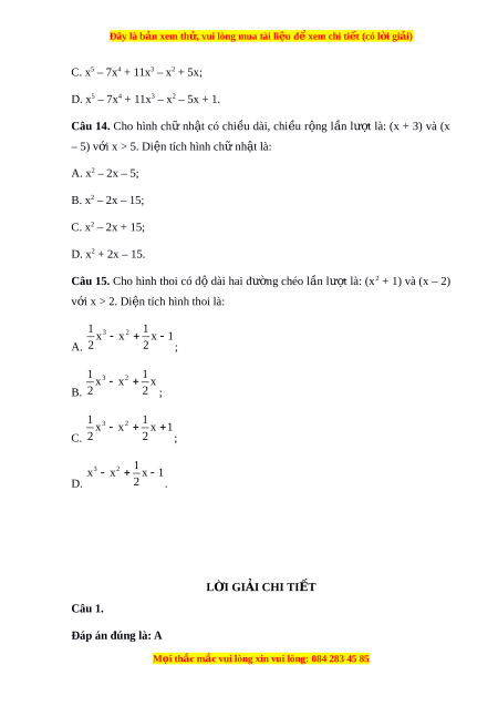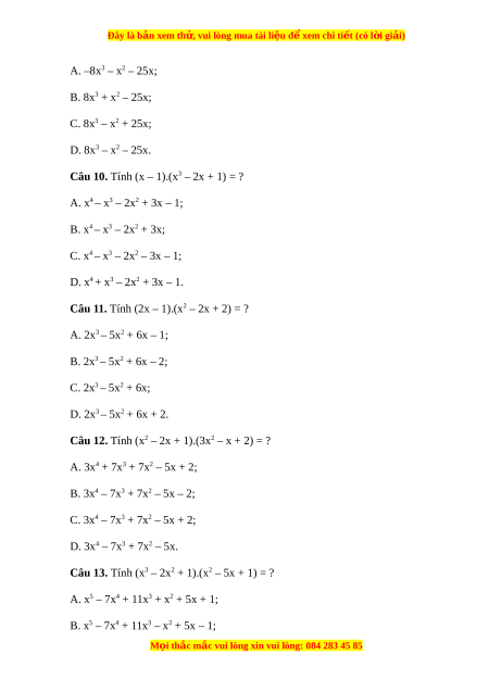 Đây là bản xem th , vu ử i lòng mua tài li u ệ đ xe ể m chi ti t ế (có l i ờ gi i ả ) A. –8x3 – x2 – 25x; B. 8x3 + x2 – 25x; C. 8x3 – x2 + 25x; D. 8x3 – x2 – 25x.