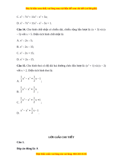 ợ là: (x2 + 1) và (x – 2) v i ớ x > 2. Di n t ệ ích hình thoi là: 1 1 3 2 x x x 1 A. 2 2 ; 1 3 2 1 x x x B. 2 2 ; 1 3 2 1 x x x 1 C. 2 2 ; 3 2 1 x x x 1 D. 2 . L I Ờ GIẢI CHI TI T Ế Câu 1. Đáp án đúng là: A M i