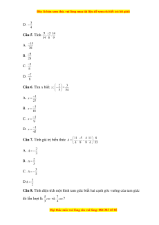 3 D. − 4 9 5 − 14 Câu 5. Tính . . 14 8 9 −15 A. 28 9 − B. 28 5 − C. 8 7 − D. 8 2 3