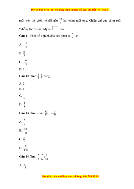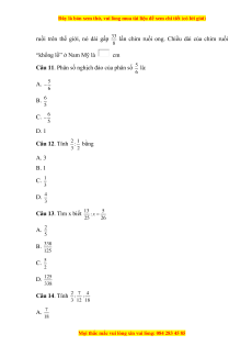 Câu 11. Phân số nghịch đảo của phân số là: 6 5 A. − 6 6 B. 5 6 C. − 5 D. 1 2 1