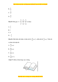 Câu 12. Tính : bằng 3 2 A. 3 B. 1 1 C. 3 4 D. 3 13 5 Câu 13. Tìm x biết : x = 25 26 2 A. 5 338 B. 125 5 C. 2 125 D. 338 2 7 4 Câu 14. Tính : : 3 12 18 7 A. 18