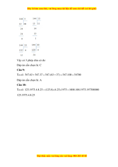 Câu 8: Trong các phép chia sau, có bao nhiêu phép chia có dư?